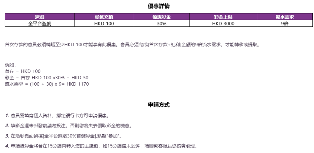 2. 獎金自派發當日起計算三十(30)天后將作無效。如果玩家在期限前無法達到投注的先決條件值,則獎金所贏得的贏利和彩金將從玩家的賬戶中取消